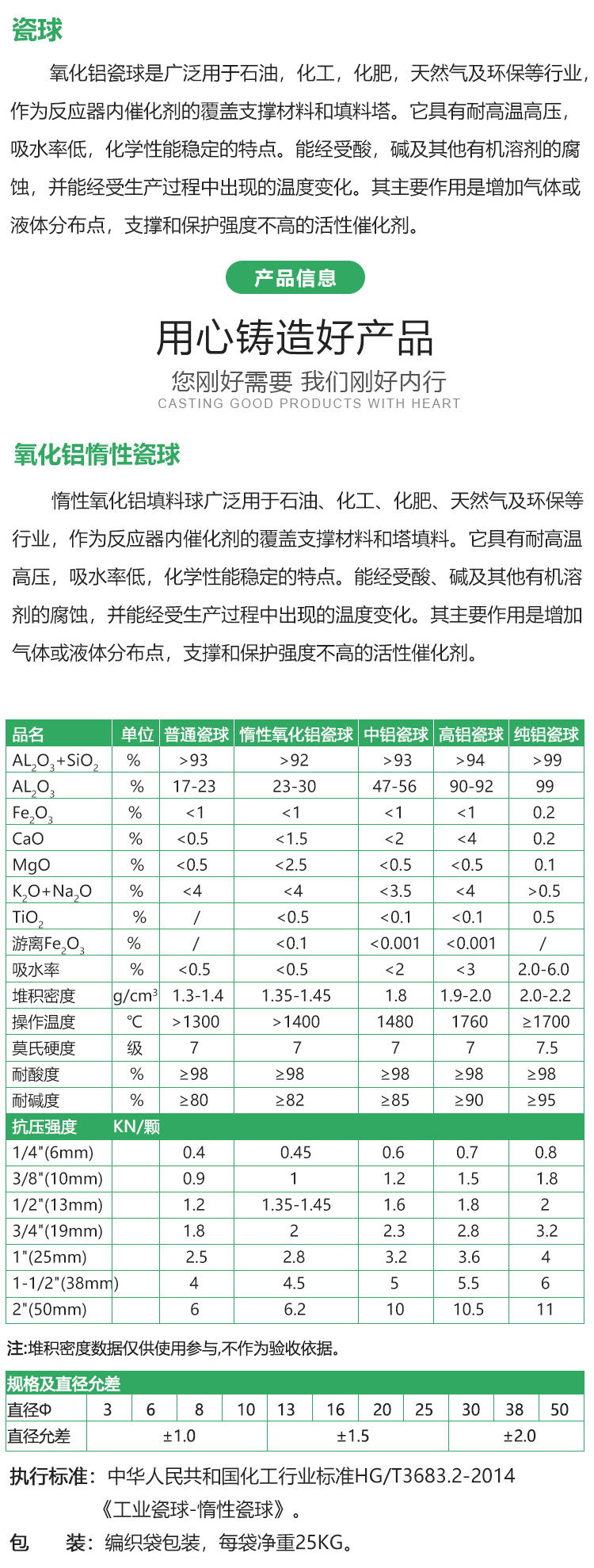 惰性氧化铝瓷球广泛用于石油、化工、化肥、天然气及环保等行业,作为反应器内催化剂的覆盖支撑材料和塔填料。它具有耐高温高压,吸水率低,化学性能稳定的特点。能经受酸、碱