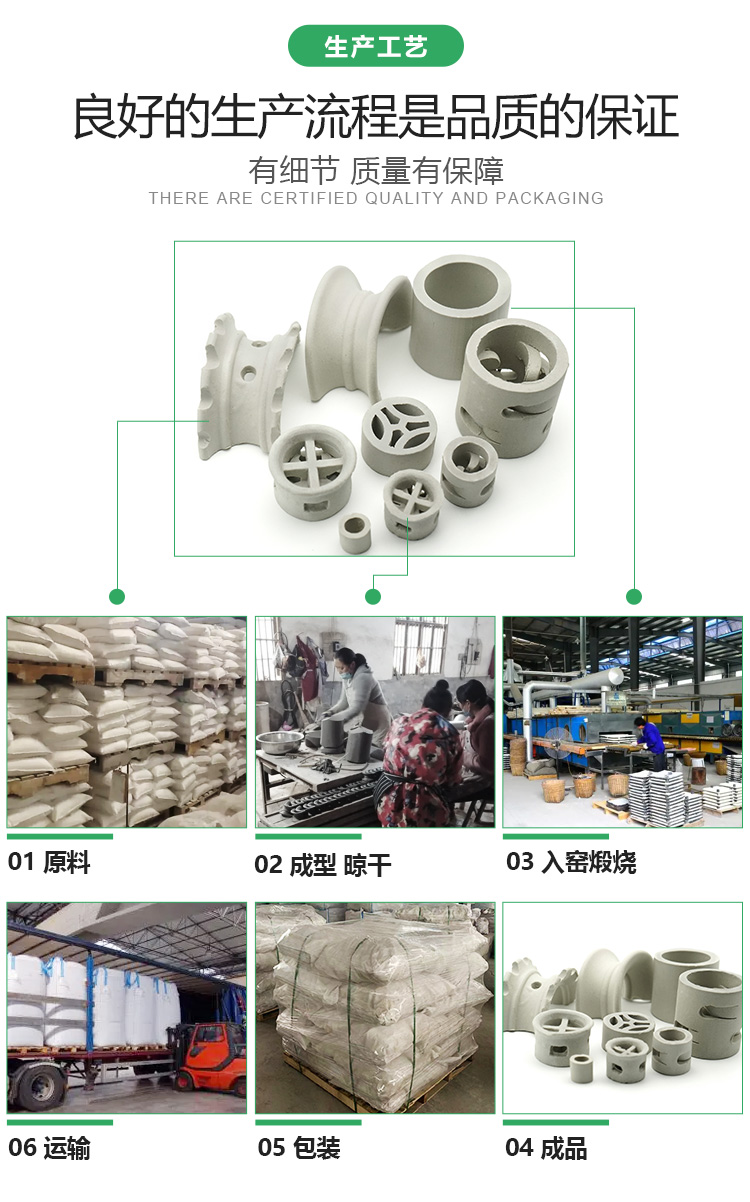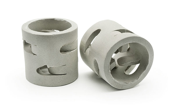 陶瓷鲍尔环填料是一钟高径相等的开孔环形填料,每层窗孔有5个舌叶,尺寸有25mm、38mm 、50mm、76mm等,主要用在喷淋塔,洗涤塔、干燥塔等环保设备里面,最佳伴侣,由于比表面积大,