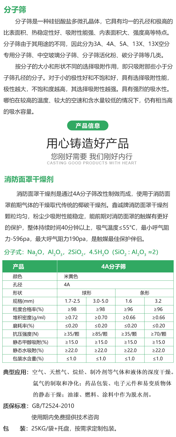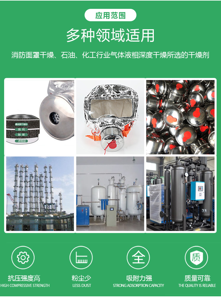 消防面罩干燥剂是通过4A分子筛改性制作而成,使用于消防面罩前期气体的干燥取代传统的椰碳干燥剂
