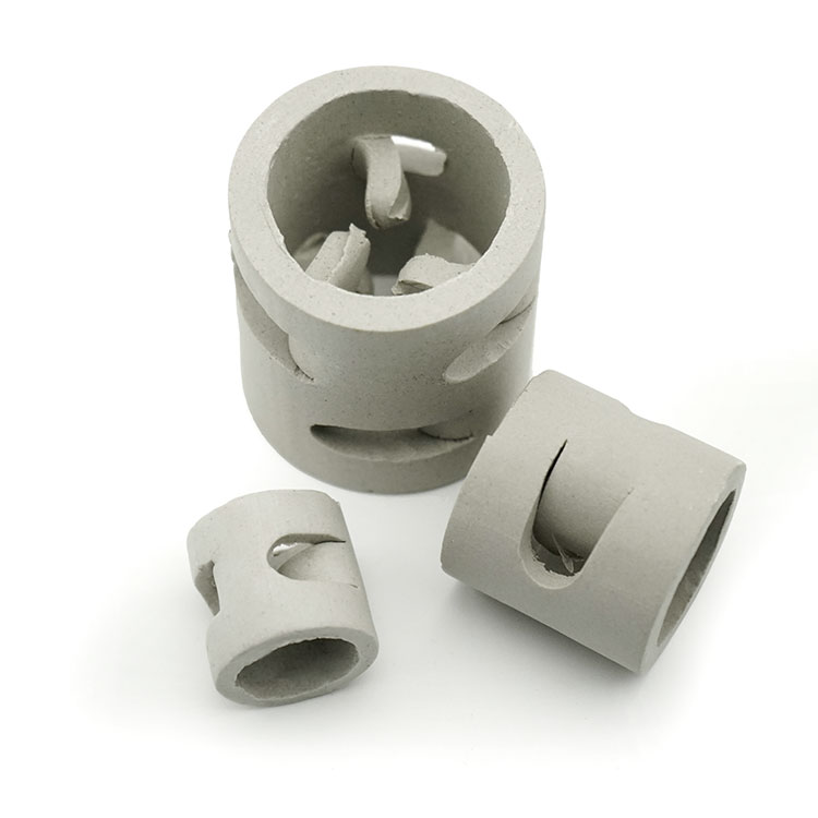 陶瓷鲍尔环具有通量大、阻力小、分离效率高及操作弹性大等优点,在相同的降压下,处理量可较拉西环大50%以上。在同样处理量时,降压可降低一半,传质效率可提高20%左右。与拉西环比较,