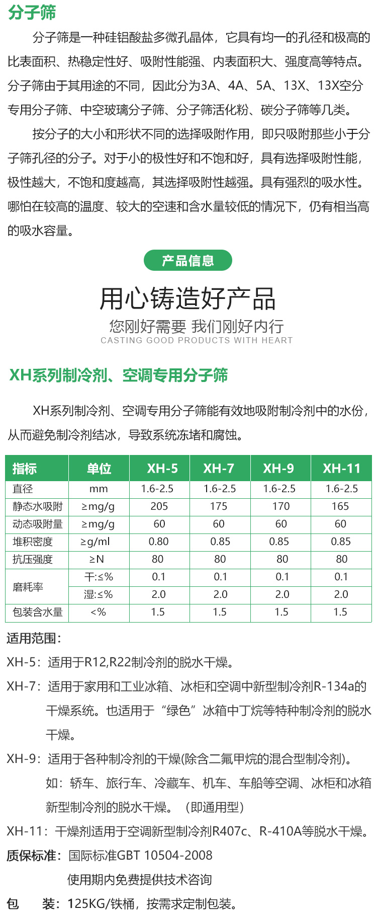XH-9,XH-7制冷剂的脱水干燥具有高化学相容性,高抗压强度和粒度完整性防止压破和磨耗,高吸水能力